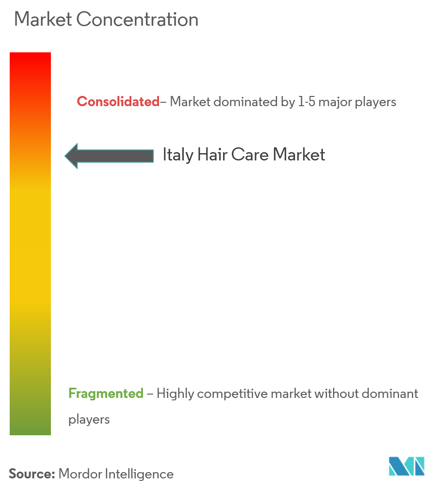 Italy hair care market comprises of established players, such as L'Oreal, Procter & Gamble, and Unilever, which account for a significant share of the market studied. The rest of the market is accounted for by significant regional players. These players sell their products on a global scale and are known to invest significantly in product innovations, R&D, and brand building. Brand identity plays a vital role in determining end-user behavior as they consider strong brands to be synonymous with high quality. Companies are using digital and social media advertisements to make consumers aware of the new product launches in the market. Additionally, the market incumbents face intense competition from regional and local companies with niche labels.