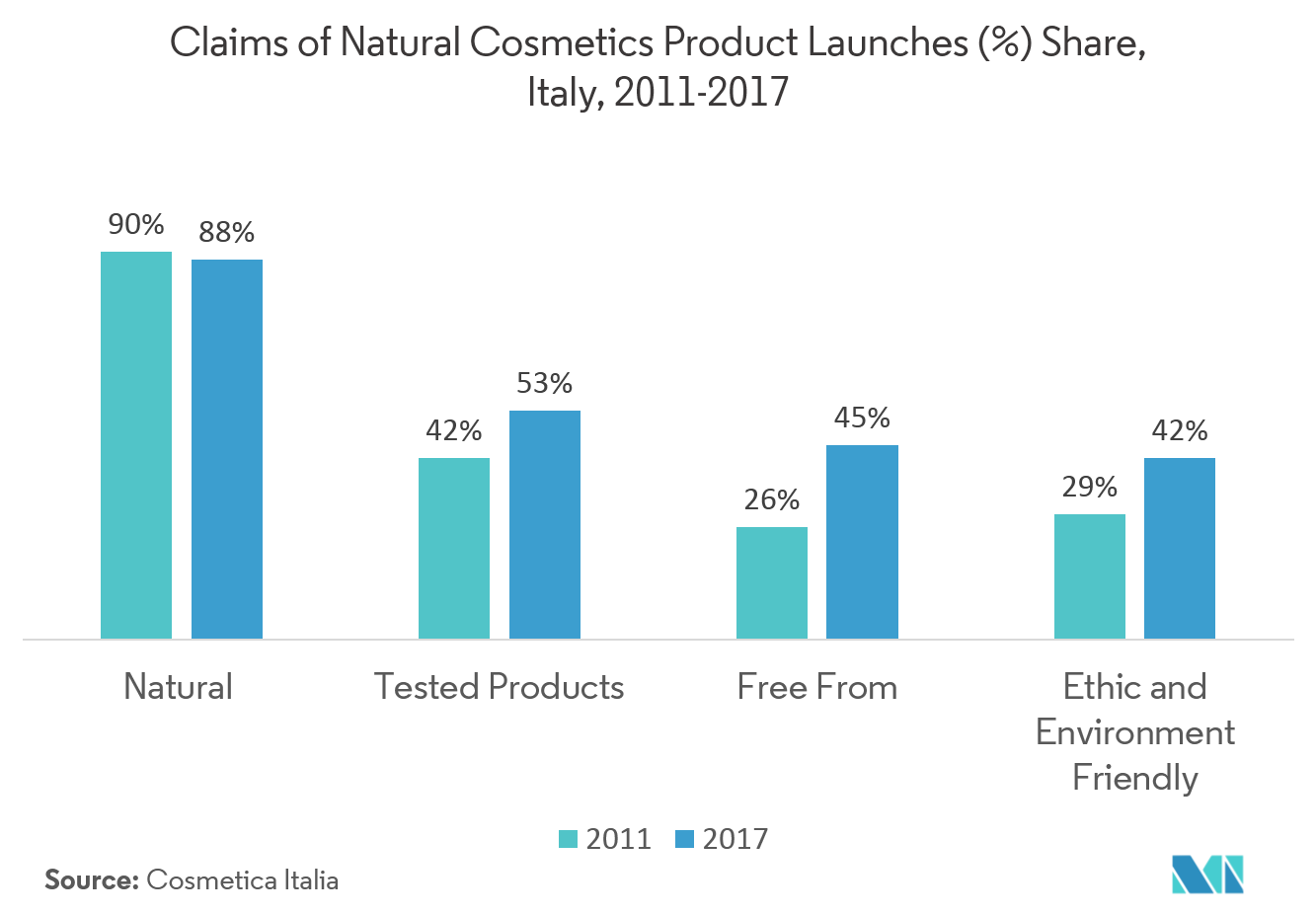 The evolving retail hair care industry is marked by the emergence of many stores in the hypermarket, supermarket, and specialty formats, in which display products in retail shelves, that enabvle customers to make an informed buying decision by comparing prices and label claims according to their preferences. The penetration of organized retail will enable consumers to seek information about various brands, compare prices, and quality, which results in a better purchase decision. According to a report published by Cosmetica Italia in 2017, 88 percent of new natural cosmetics products launched on the Italian market in 2017 claimed to be natural, 53% claimed to be tested products, and 42% claimed to be ethic and environment-friendly.